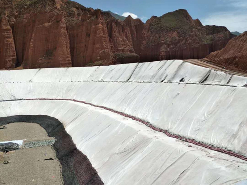 (3)土工膜铺设后,要用砂袋压住,以防风动,边缘接缝处要求不能有污物、水分、尘土等。